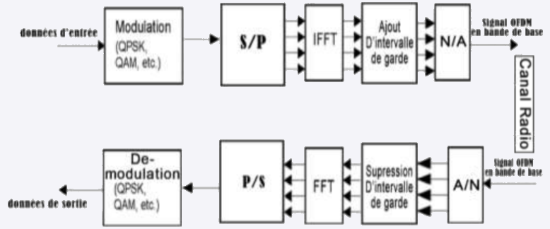- 5G utilizes principaly Orthogonal Frequency-Division Multiplexing (OFDM) to improve spectral efficiency, support higher data rates, and enhance communication robustness by dividing the bandwidth into multiple orthogonal subcarriers, reducing interference and handling multipath propagation effectively.