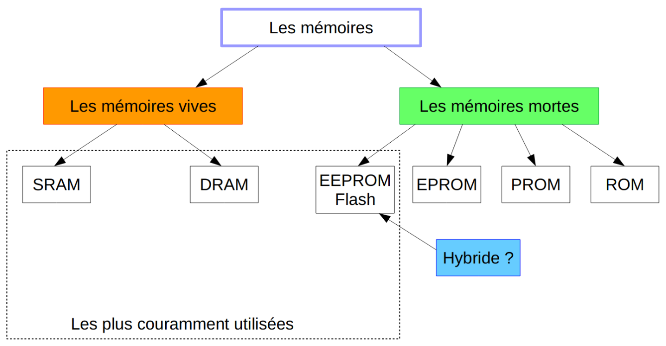 - Technologies mémoire: SRAM, DRAM, ROM, Flash