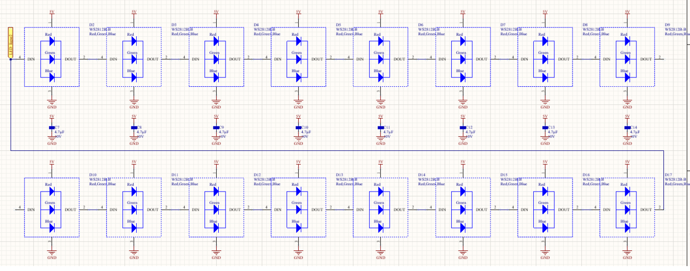- WS2812B LEDs: Addressable RGB LEDs that can be individually controlled via an SPI bus.