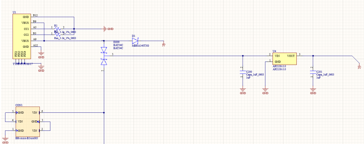 - Power supply components, including voltage regulators and DC-DC converters to manage different power supplies (USB and batteries).