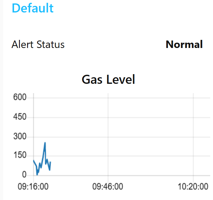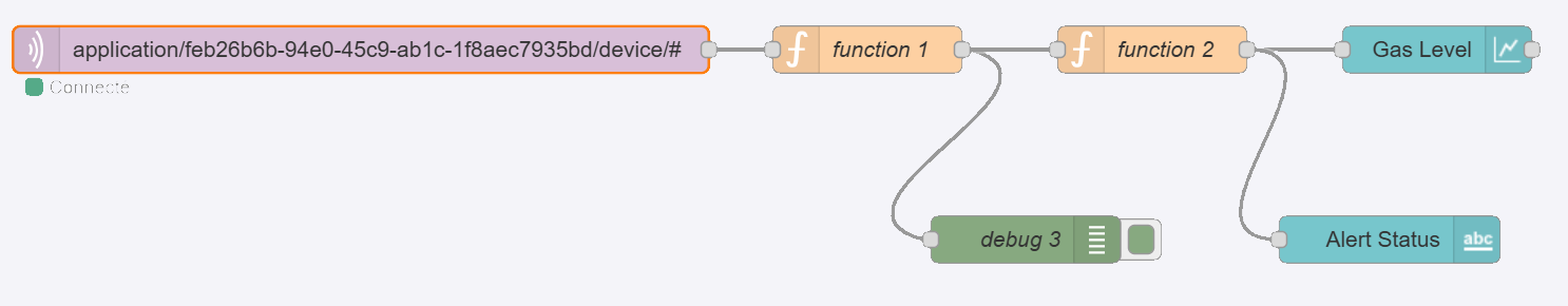 - Data Processing: Another function node analyzes the gas level and triggers an alert if the value exceeds a set threshold (e.g., 200).