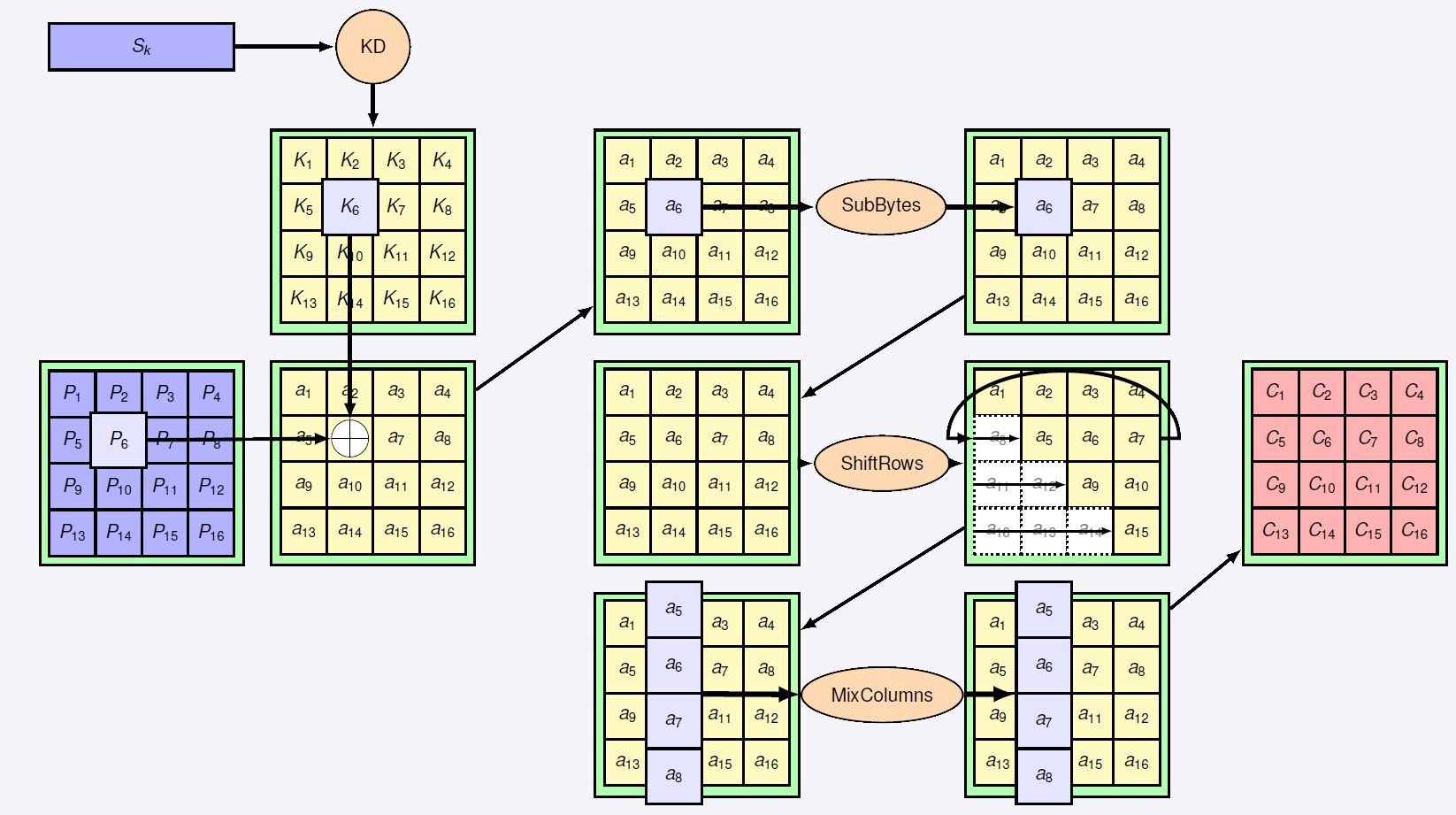 MixColumns: This is a mixing operation that operates on the columns of the state, combining the four bytes in each column. This step ensures that the columns of the state are mixed, providing further diffusion.